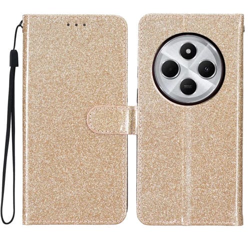Funda de Cuero con Tapa y Purpurina para Redmi A4 5G (Dorada)