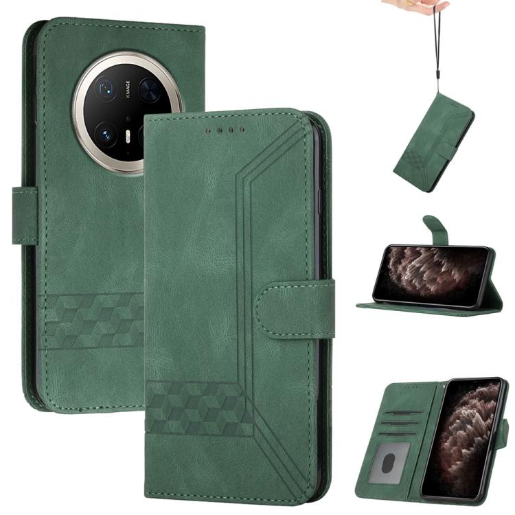 Funda de Cuero con Tapa y Tacto de Piel Cúbica para Huawei Mate 70 Pro y Mate 70 Pro+ (Verde)