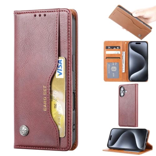 Funda de Cuero para iPhone 16 Plus con Tapa y Textura Amasable (Rojo Vino)