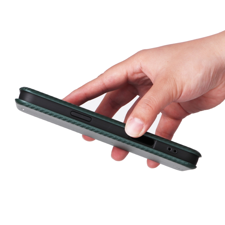 Funda de Cuero con Tapa y Textura de Fibra de Carbono para iPhone 16 Pro Max (Verde)