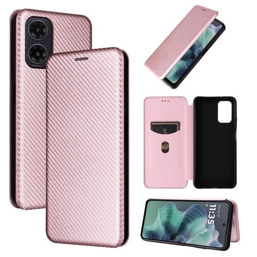 Funda de Cuero con Tapa y Textura de Fibra de Carbono para Motorola Moto G35 (Rosa)