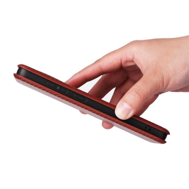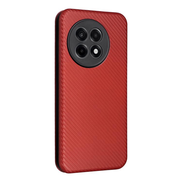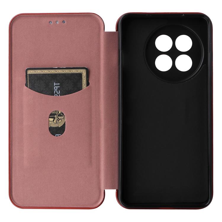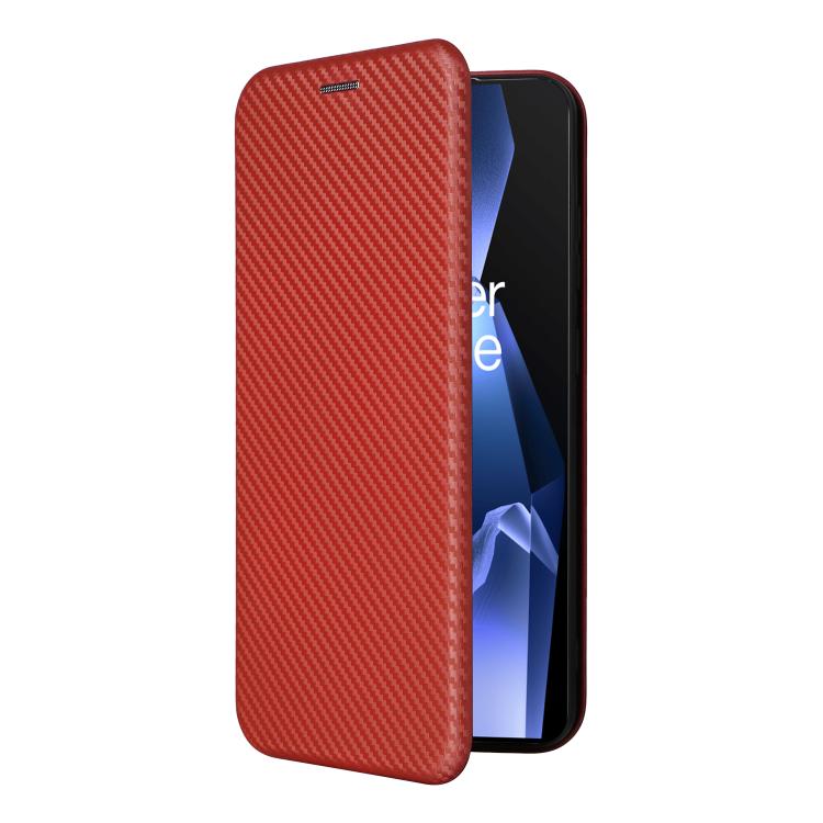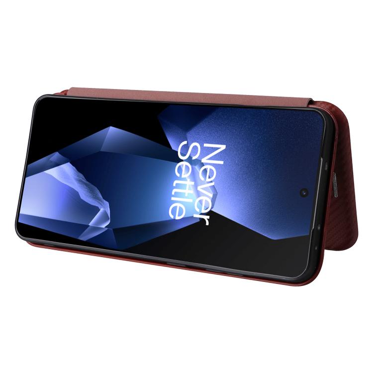 Funda de Cuero con Tapa y Textura de Fibra de Carbono para OnePlus Ace 5 Pro (Marrón)