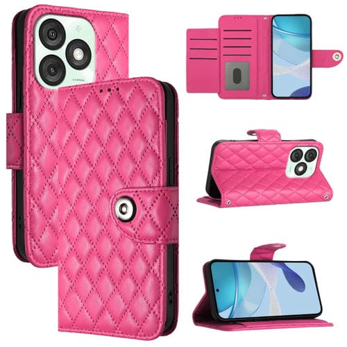 Funda de Cuero con Tapa y Textura Rombal para Teléfono Itel A50 con Cordón (Rosa y Rojo)