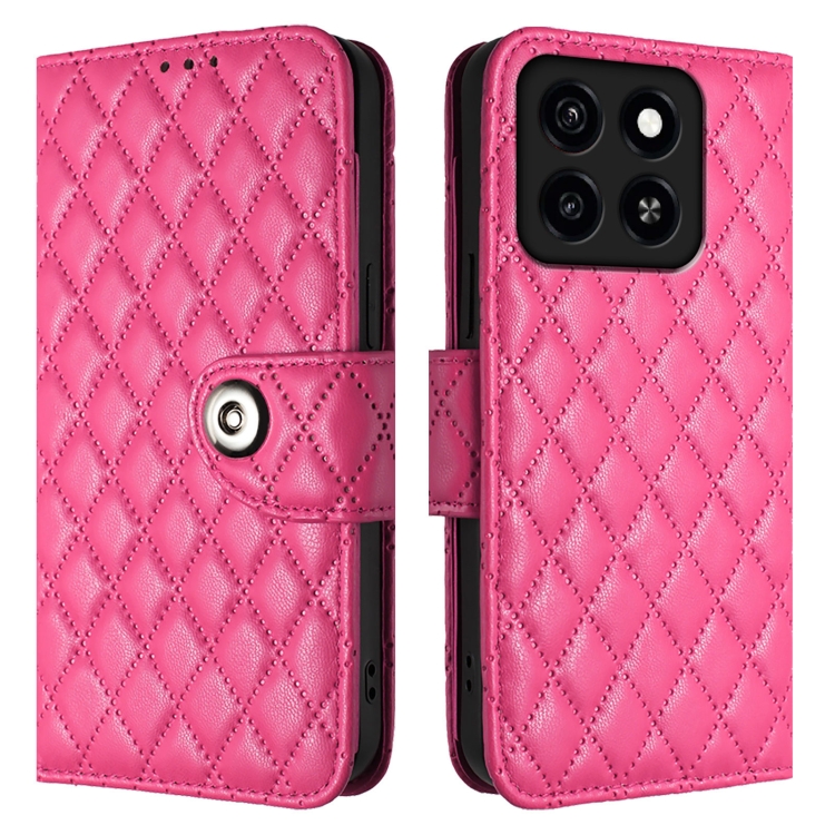 Funda de Cuero con Tapa y Textura Rombal para ZTE Blade A35/A55 con Cordón (Rosa y Rojo)