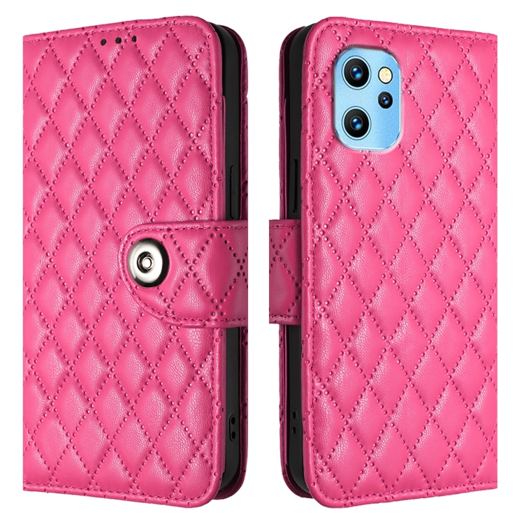 Funda de Cuero con Tapa y Textura Rómbica para Umidigi Power 7 Max con Cordón (Rosa y Rojo)