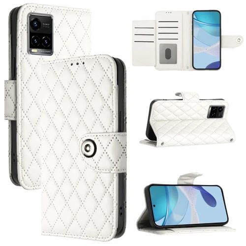 Funda de Cuero con Tapa y Textura Rómbica para Vivo Y33S 4G / Y21 2021 / Y21S (Blanca)