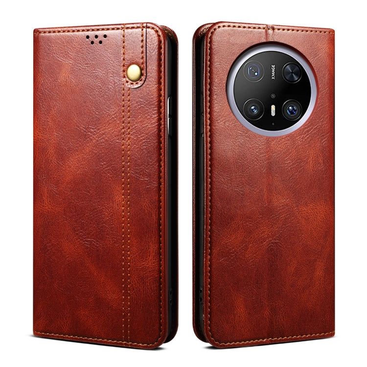 Funda de Cuero Crazy Horse con Cera de Aceite para Huawei Mate 70 Pro 5G / 70 Pro+ 5G (Marrón)