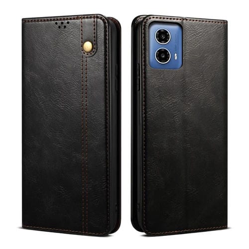 Funda de Cuero Crazy Horse con Cera de Aceite para Motorola Moto G35 (Negro)
