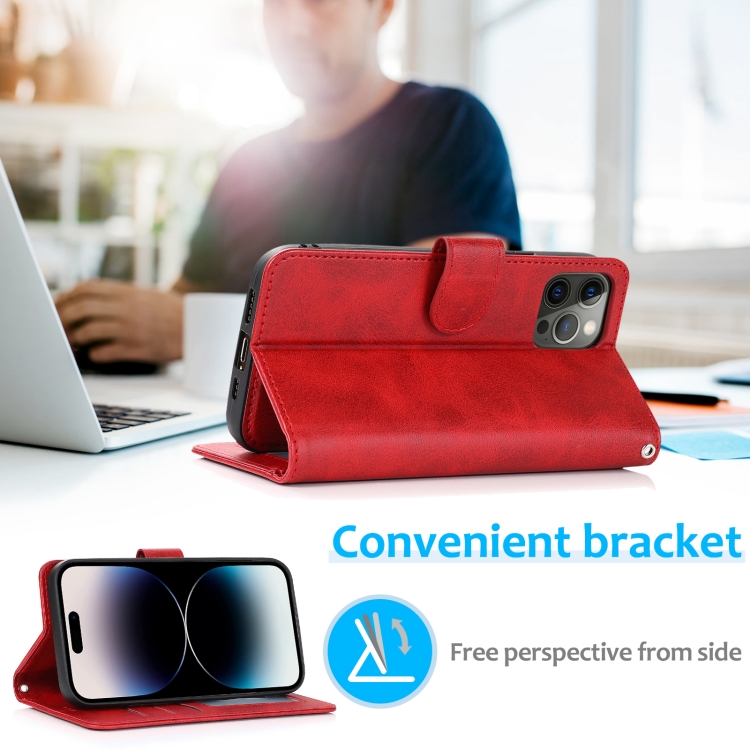 Funda para iPhone 16 Pro Cuero Textura Becerro 2 En 1 Desmontable Tapa Magnética (Rojo)