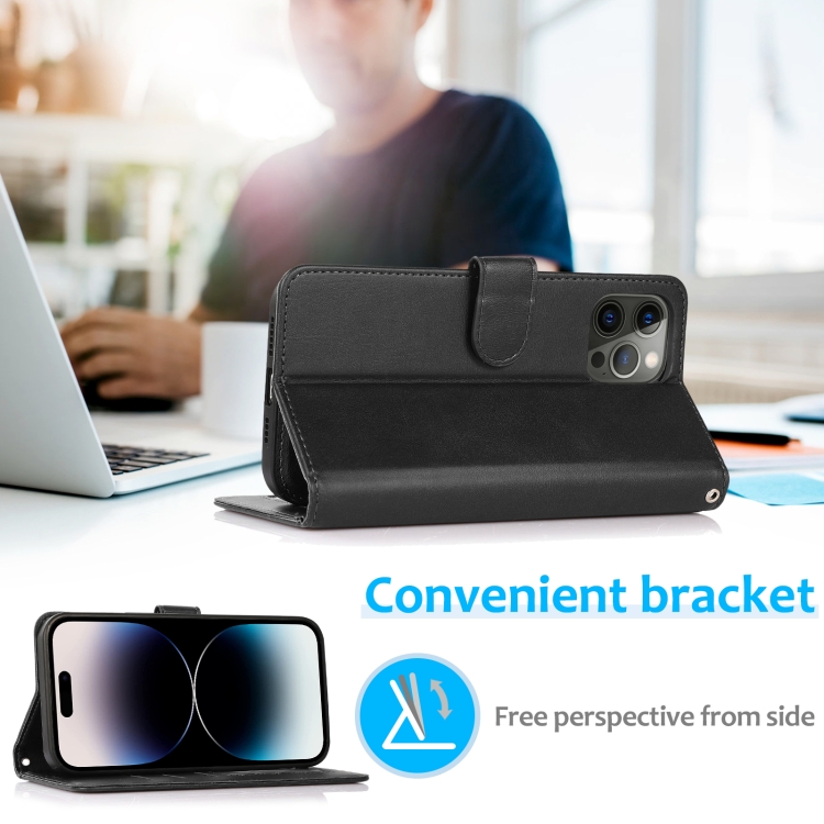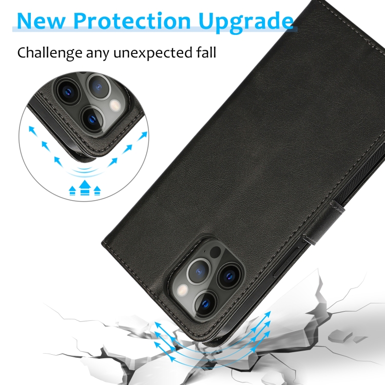 Funda de Cuero Textura Becerro 2 En 1 Desmontable con Tapa Magnética para iPhone 16 Pro (Negro)