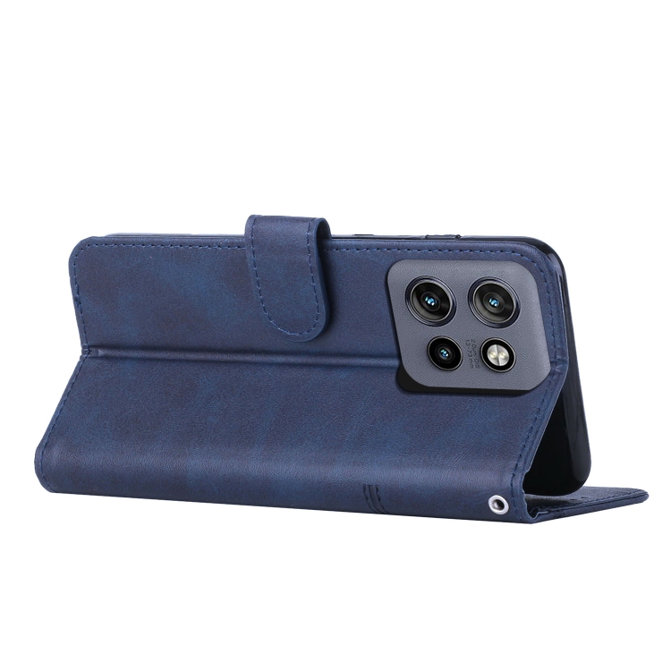 Funda de Cuero con Textura de Becerro y Hebilla para Motorola Edge 50 Neo (Azul)