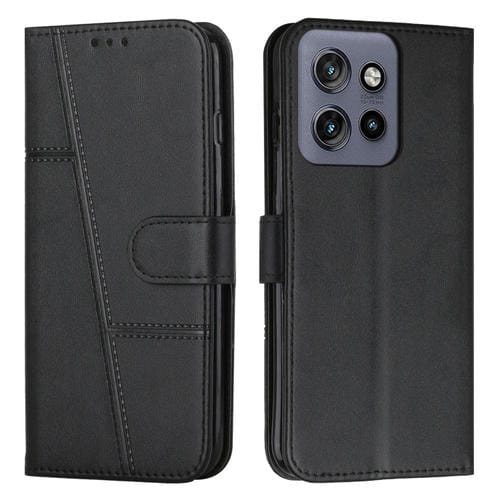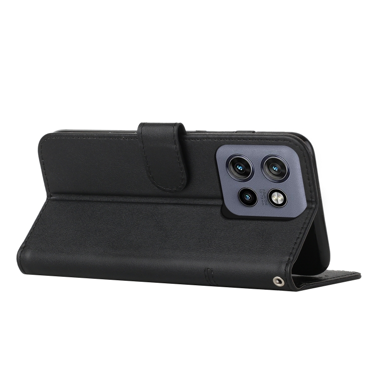 Funda de Cuero Textura de Becerro con Hebilla para Motorola Edge 50 Neo (Negro)