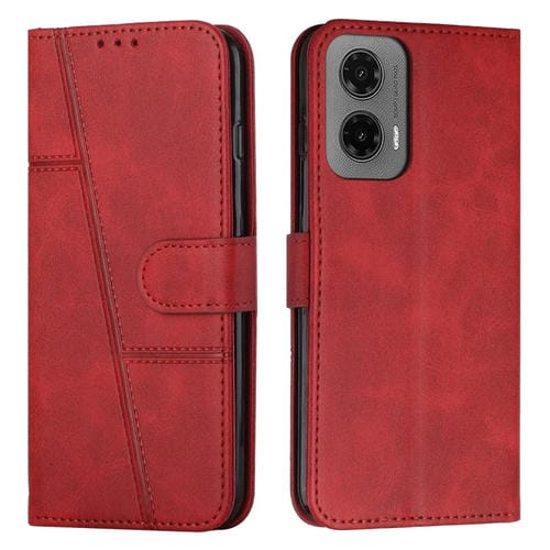 Funda de Cuero con Textura de Becerro y Costuras para Motorola Moto G35 (Rojo)