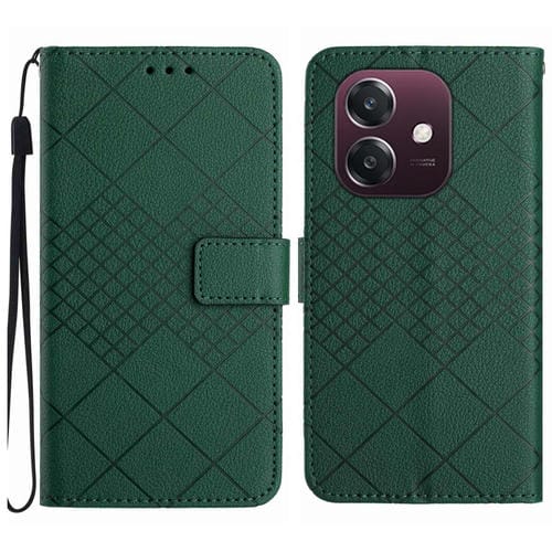 Funda de Cuero con Textura de Cuadrícula Rómbica para Oppo A3 4G Global / 5G Global (Verde)