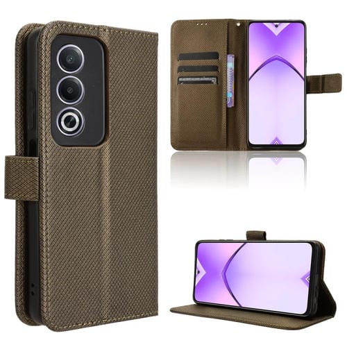 Funda de Cuero con Textura de Diamante para Oppo A3 Pro 5G (Marrón)