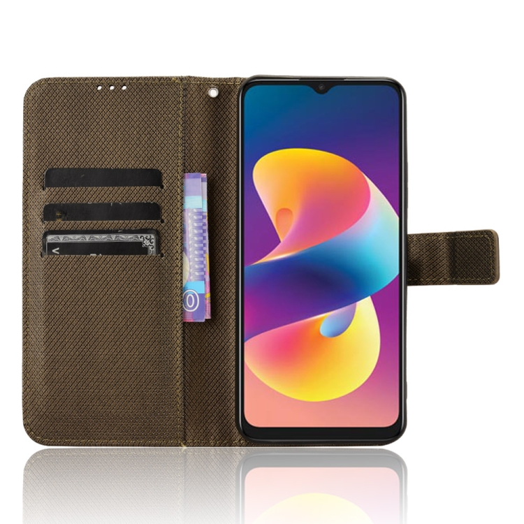 Funda de Cuero Textura de Diamante para TCL 50 Le (Marrón)