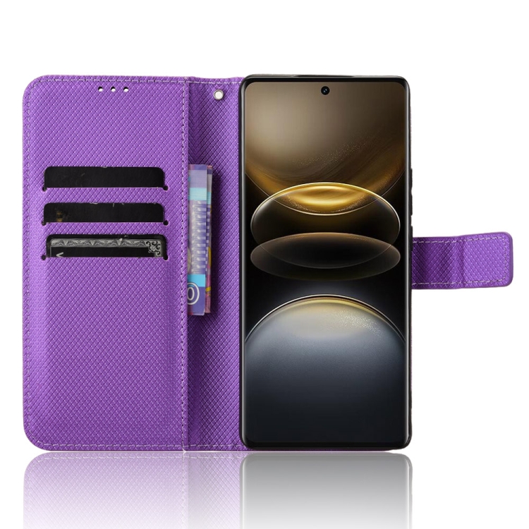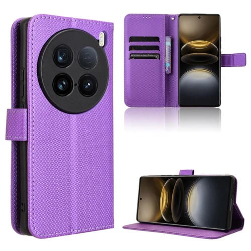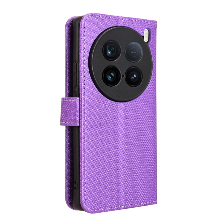 Funda de Cuero con Textura de Diamante para Vivo X100 Ultra 5G (Morado)