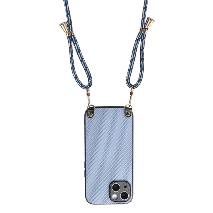 Funda de Cuero con Textura de Fibra de Carbono para iPhone 16 Pro con Correa Cruzada (Azul)