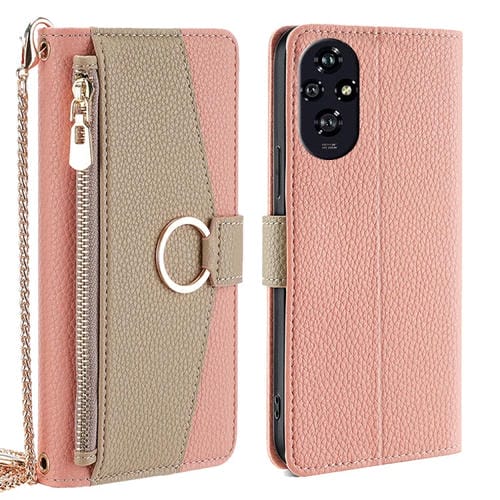 Funda de Cuero con Textura de Lichi para Honor 200 5G con Bandolera (Rosa)