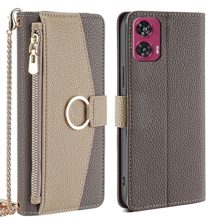 Funda de Cuero con Textura de Lichi para Motorola Edge 50 Fusion 5G (Gris)