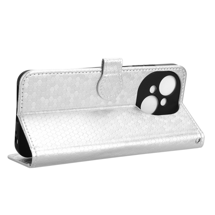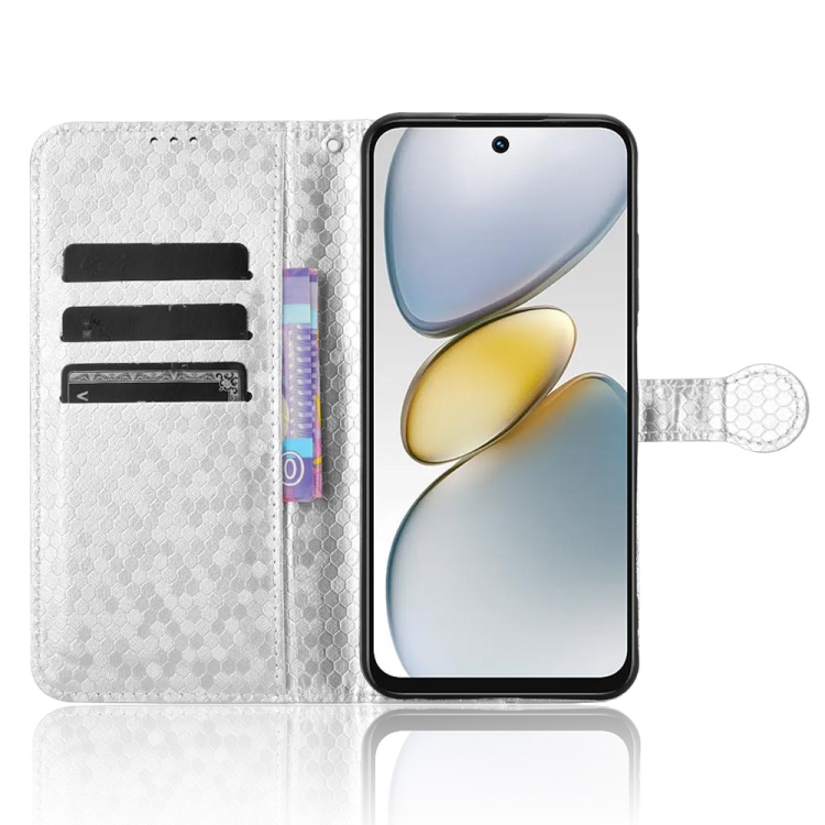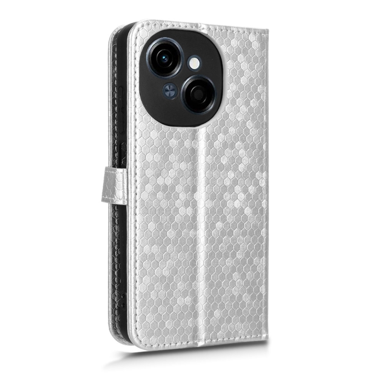 Funda de Cuero para Tecno Spark Go 2025 y Spark Go 1 con Textura de Puntos en Panal (Plateada)