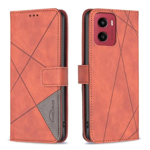 Funda de Cuero Motorola Moto G05 con Textura de Rombos y Hebilla Magnética (Marrón)