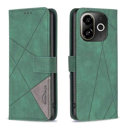 Funda de Cuero para Tecno Pop 9 5G y Spark 30C 5G con Textura de Rombos y Hebilla Magnética (Verde)