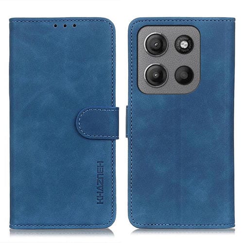 Funda de Cuero Khazneh para Motorola Moto G15 4G/G05 con Textura Retro (Azul)