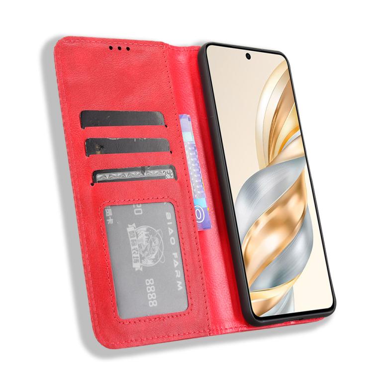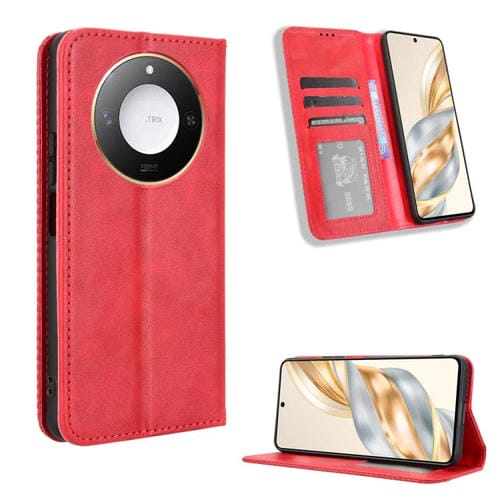 Funda de Cuero con Textura Retro y Hebilla Magnética para Honor X60 5G/X9C (Roja)