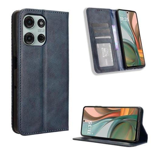 Funda de Cuero Motorola Moto G75 5G Textura Retro Hebilla Magnética (Azul)
