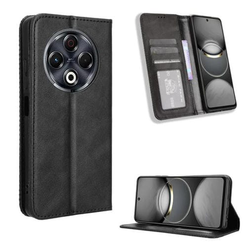 Funda de Cuero para Tecno Spark 30 4G con Textura Retro y Hebilla Magnética (Negro)