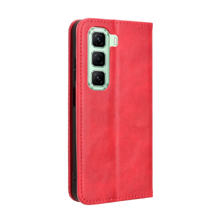 Funda de Cuero Textura Retro con Hebilla Magnética para Infinix Hot 50 4G (Rojo)