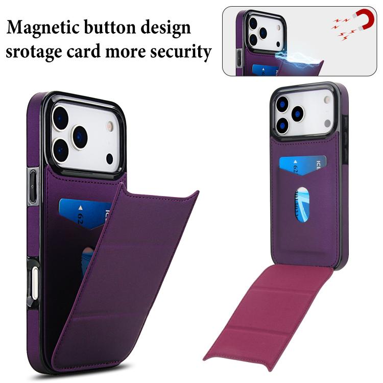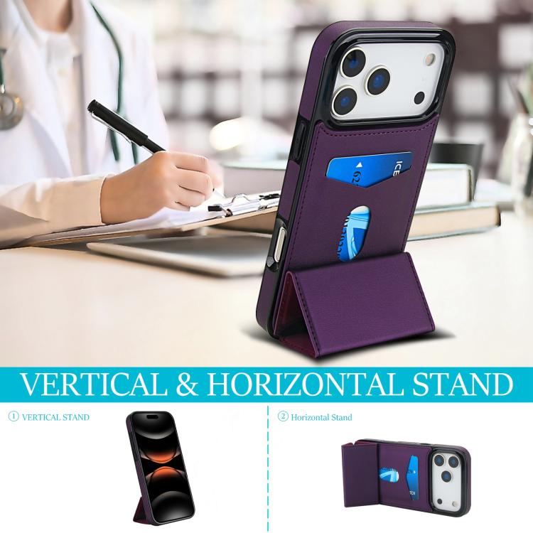 Funda de cuero con tres pliegues y ranura para tarjetas para iPhone 17 Pro Max (morado oscuro)