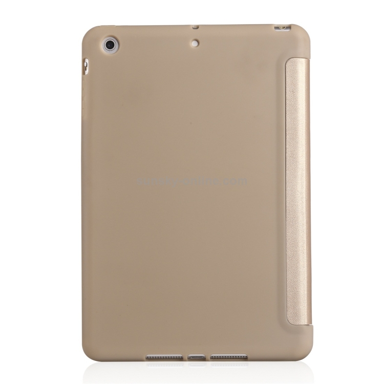 Funda de Cuero Cobertura Total iPad Mini 2019 Textura Mijo PU Gel Sílice Soporte Plegable (Dorado)