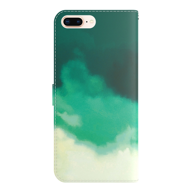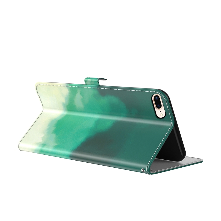 Funda de Cuero Flip Horizontal Patrón Acuarela con Soporte Ranura Tarjeta Billetera para iPhone 8 Plus y 7 Plus (Cian Green)