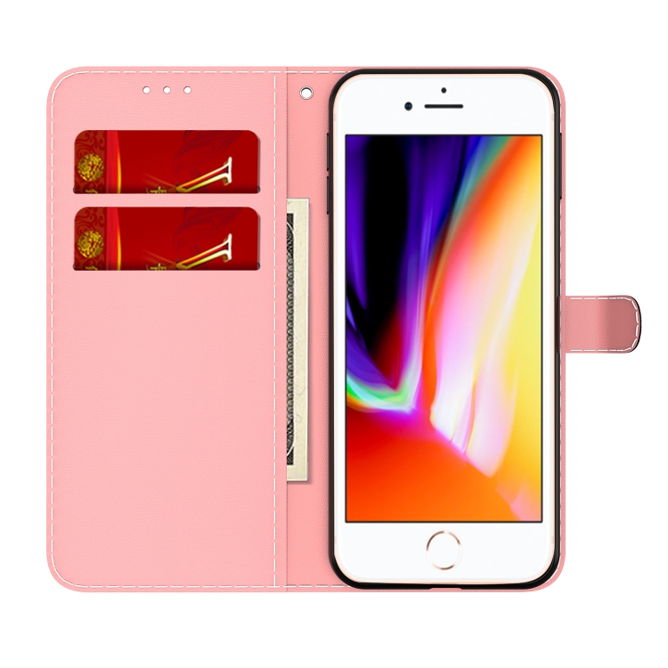 Funda de cuero flip horizontal patrón acuarela con soporte ranura tarjeta billetera para iPhone 8 Plus y 7 Plus (Spring Cherry)