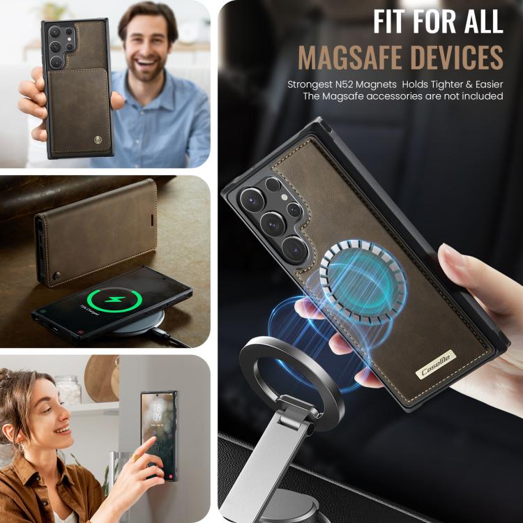 Funda de cuero desmontable con bloqueo RFID magnético para Samsung Galaxy S25 Ultra 5G CaseMe C49 (café)
