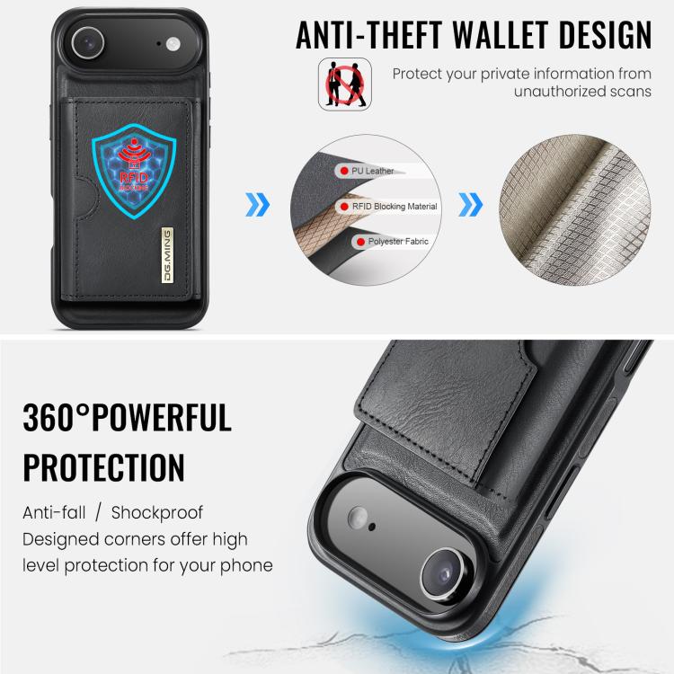 Funda de cuero extraíble para iPhone Air DG.MING M6 Series RFID con tres pliegues para tarjetas (negro)