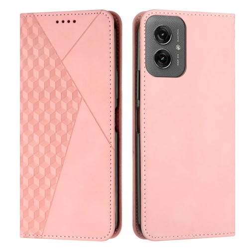 Funda de Cuero Magnética Motorola Moto G55 con Empalme de Diamantes (Oro Rosa)