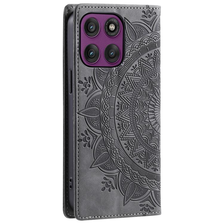 Funda de cuero magnética con relieve Totem para Motorola Edge 60 Pro (gris)