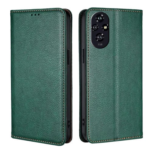 Funda de Cuero Magnética para Honor 200 5G con Acabado Brillante y Aceite Sólido (Verde)