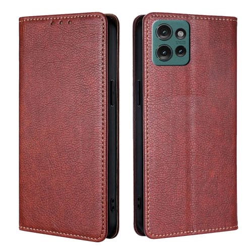 Funda de Cuero Magnética para Motorola Edge 50 5G con Acabado Brillante y Aceite Sólido (Marrón)