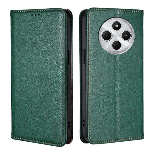 Funda de Cuero Magnético con Acabado Brillante y Aceite Sólido para Redmi 14C 4G (Verde)