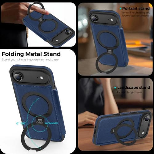Funda de cuero MagSafe RFID con rotación de 360 grados para iPhone 17 (azul)