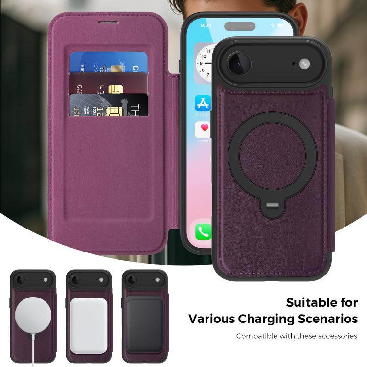 Funda de cuero MagSafe RFID para iPhone 17 Knight Shield con rotación de 360 grados (morado)