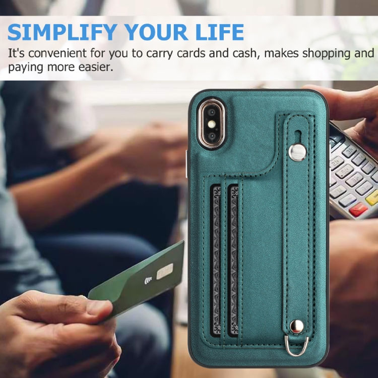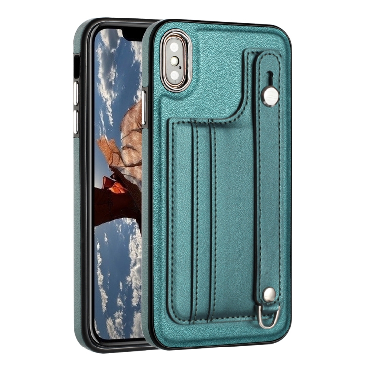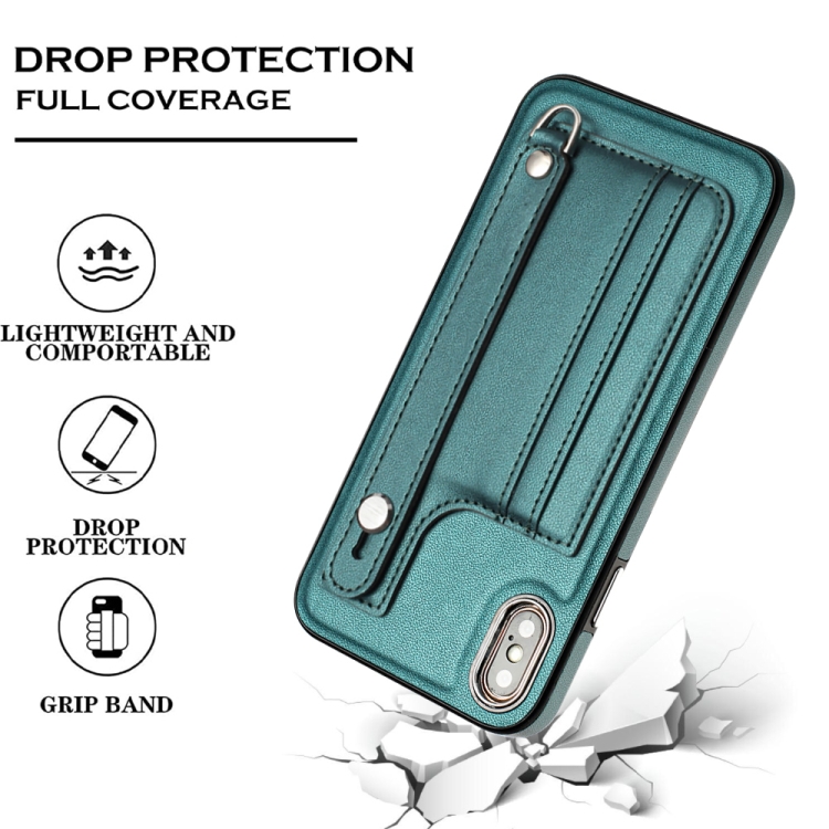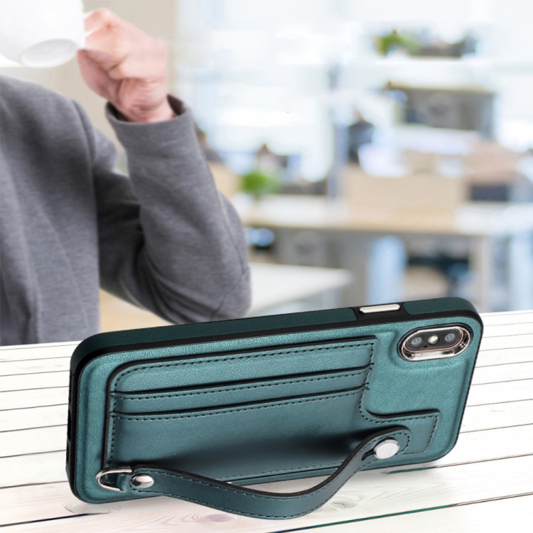 Funda de Cuero para iPhone Xs Max a Prueba de Golpes con Correa para la Muñeca (Verde)