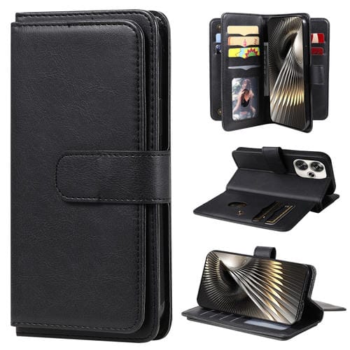 Funda de Cuero para Teléfono con 10 Ranuras para Tarjetas y Billetera Multifunción para Xiaomi Poco F6 (Negro)