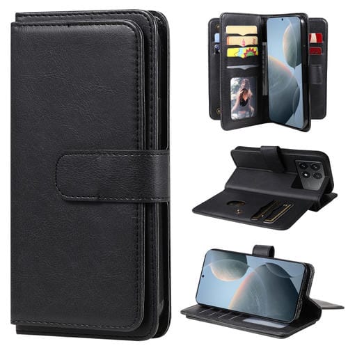 Funda de Cuero para Teléfono con 10 Ranuras para Tarjetas y Billetera Multifunción para Xiaomi Poco F6 Pro (Negro)