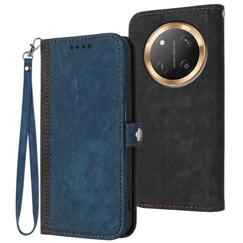 Funda de Cuero para Honor X9C Global con Correa de Mano y Doble Pliegue con Hebilla Lateral (Azul Real)