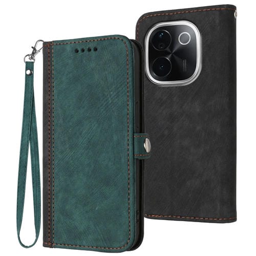 Funda de Cuero para Teléfono con Correa de Mano y Hebilla Lateral Doble Plegable para Vivo Iqoo Z9S Pro/T3 Pro 5G (Verde Oscuro)